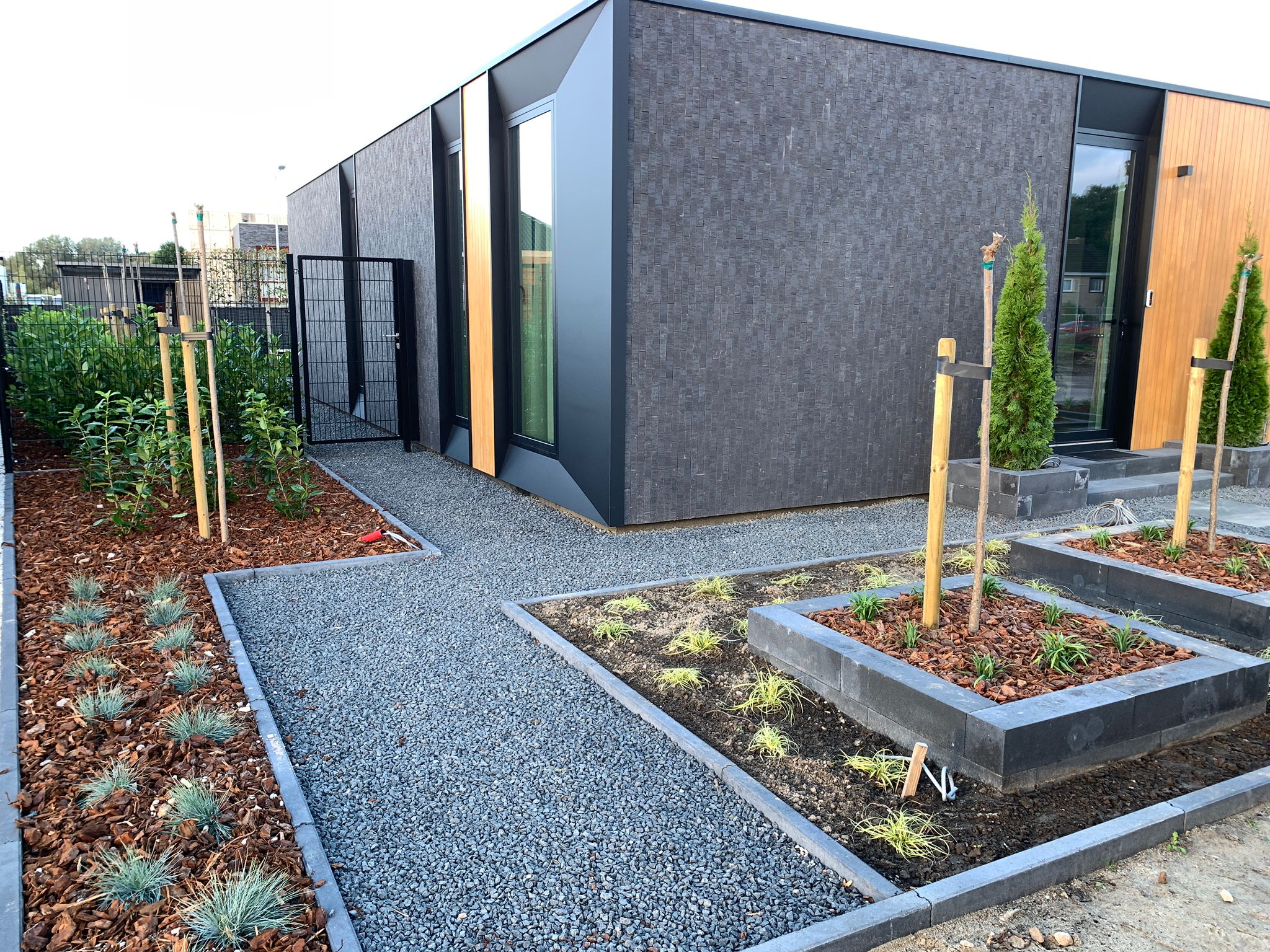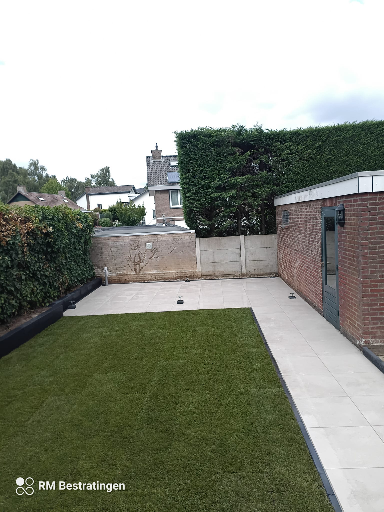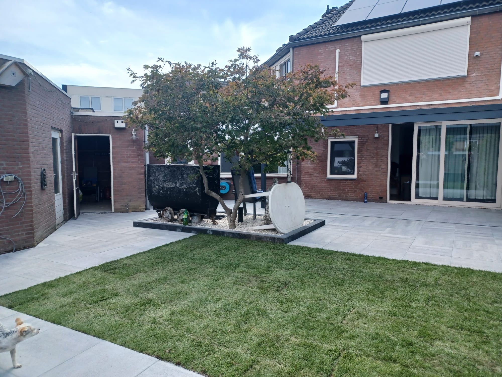Vakkundig aangelegd kunstgras of gazon, met oog voor afwatering en een strak eindresultaat.